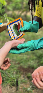 We were invited to help plant seeds. The Mamaz showed us each step with care, loosening the soil, placing the seeds, covering them with compost, and finally protecting them with leaves. Everything was done with intention and knowledge.